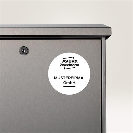 Etikett, kör, 30 mm, poliészter, időjárásálló, AVERY ZWECKFORM, fehér, 960 etikett/csomag